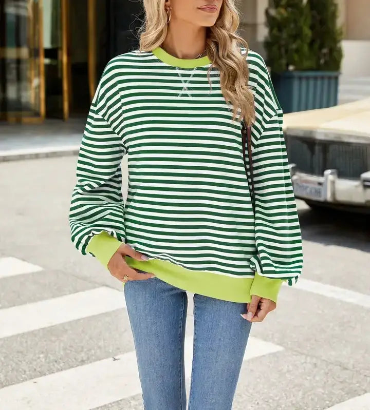 Material: Soft fabric that effortlessly combines feminine fashion with casual style. Features: Long-sleeved shirt, crew-neck sweater, striped pattern, sleeves and hem lightly colored block design to create a loose and casual effect. Patchwork pullover sweater, loose style, chic shape, women's sweater, women's wear What to wear: Striped tops are suitable for stylish women and can be worn in a formal or formal manner, making them a versatile addition to any wardrobe. Women's sweaters can be worn with jeans, pants or skirts. Occasion: Women's long-sleeved top is suitable for leisure activities, parties, dating, work, family, spring and winter vacation.